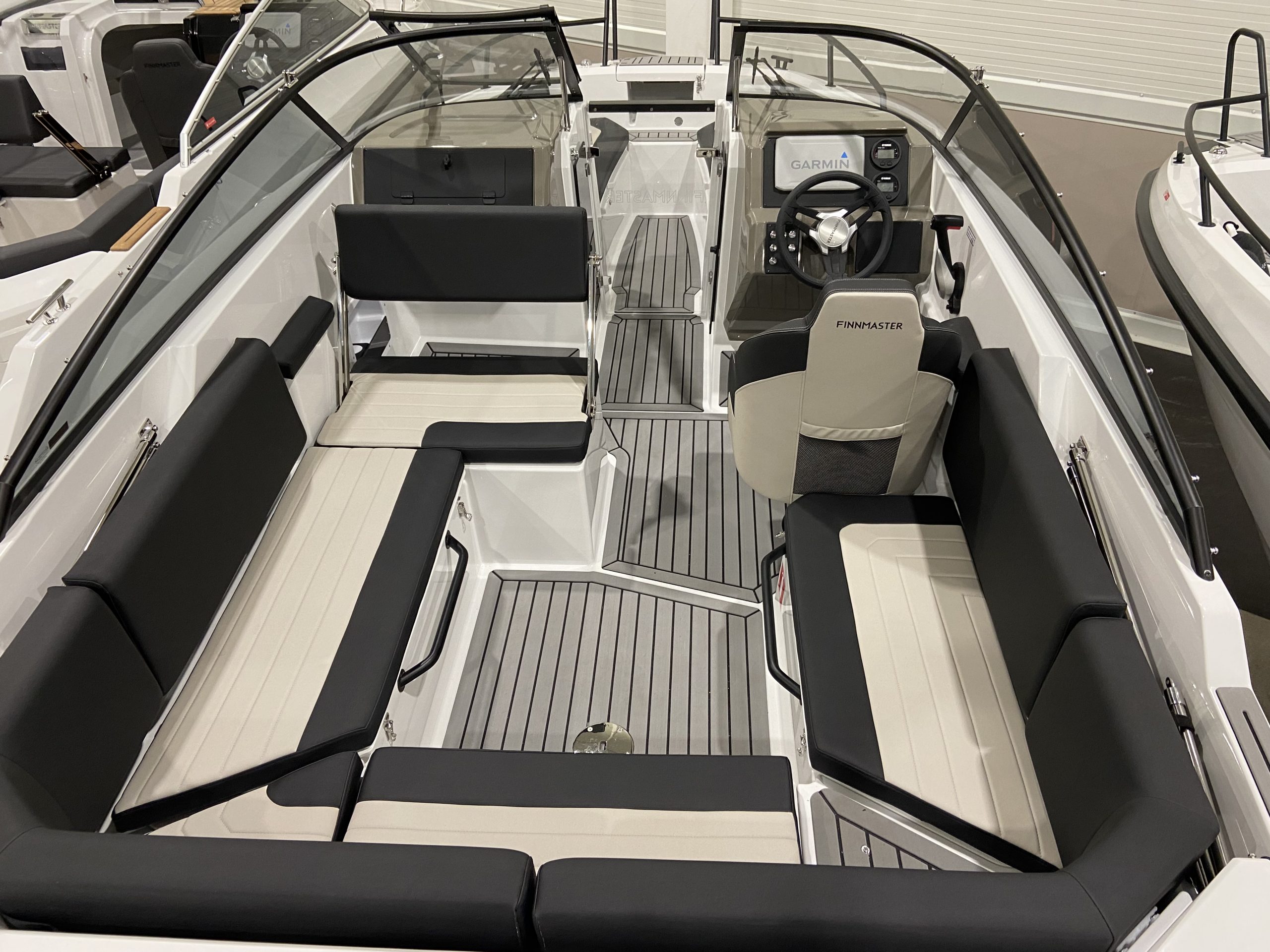 Nya Finnmaster R6 är en mångsidig båt för de soliga sommardagarna. Denna båt passar såväl till dagsturer som till vattensporter eller som förbindelsebåt. I denna bowrider finns flera ställen att slappna av på under färden, t.ex. i sittgruppen i fören eller akterns U-formade soffa och båda omvandlas lätt till solbäddar med hjälp av extra madrasser.