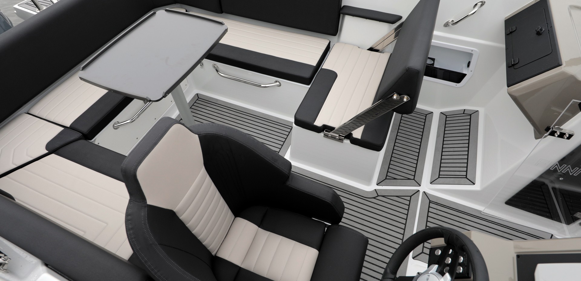 Många praktiska detaljer och det rymliga förvaringsutrymmet under bänkarna gör det möjligt att röra sig oförhindrat i båten och ökar säkerheten för hela familjen under äventyren på havet. Finnmaster R6 är en perfekt sommarbåt, som gör vardagen till en fest.